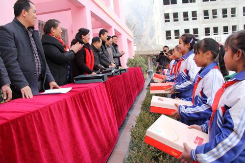 省关心下一代基金会向部分民族地区和地震灾区中小学生捐赠保暖内衣