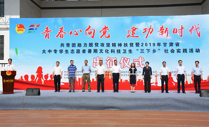 共青团助力脱贫攻坚精神扶贫暨2019年甘肃省大中专学生志愿者暑期文化科技卫生“三下乡”社会实践活动出征仪式在兰州城市学院举行