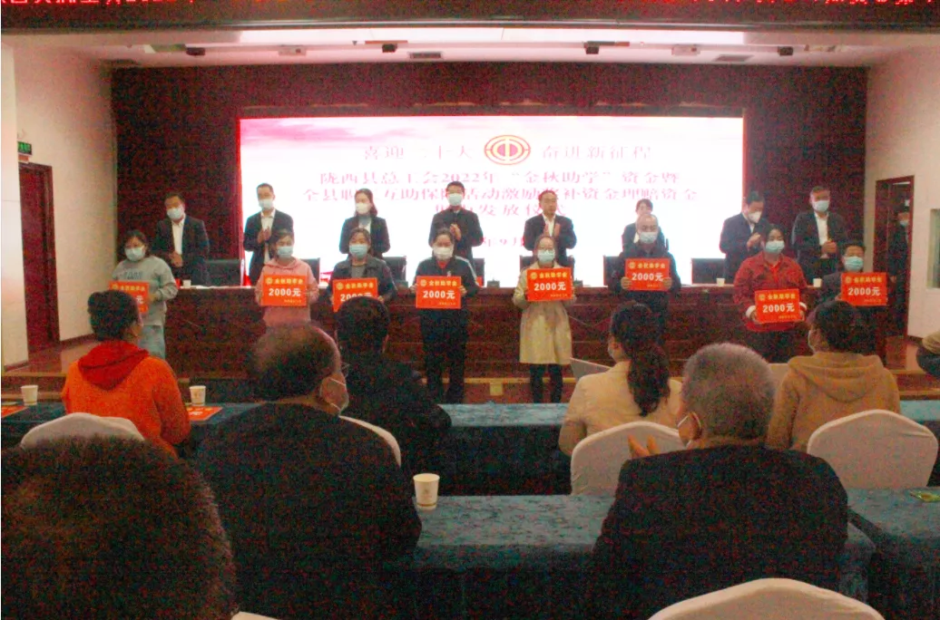近日,陇西县举行2022年“金秋助学”资金集中发放仪式。县人大常委会副主任、县总工会主席王恩茂,有关乡镇、县直部门和企业单位工会负责人、受资助的困难职工家庭品学兼优的大学生或家长,共计130余人参加了会议。